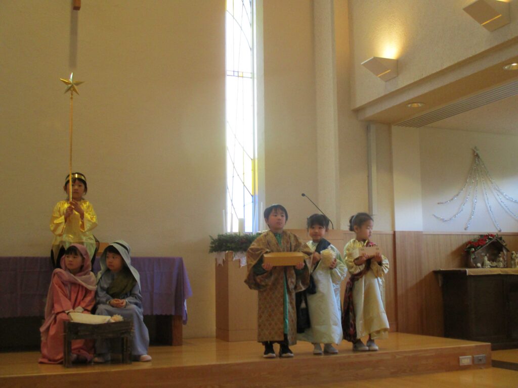 メリークリスマス!幼稚園では一足早くクリスマス礼拝でクリスマスページェントを行いました。幼稚園のこどもたちみんながそれぞれのお役になってイエス様のお誕生をおいわいしました。今日はクリスマスイブ。それぞれのご家庭であたたかなクリスマスをお迎えください。
